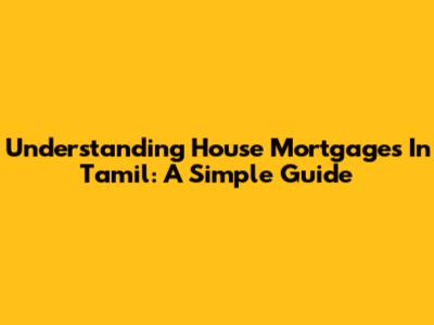 Understanding House Mortgages In Tamil: A Simple Guide