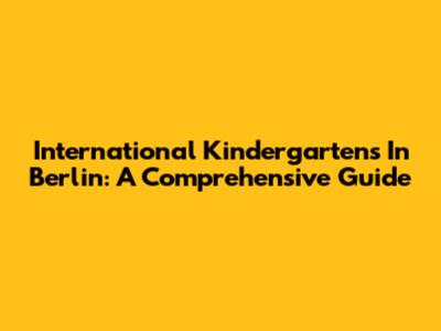 International Kindergartens In Berlin: A Comprehensive Guide