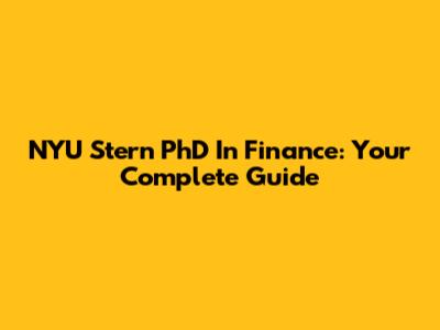 NYU Stern PhD In Finance: Your Complete Guide