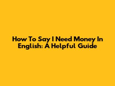 How To Say "I Need Money" In English: A Helpful Guide