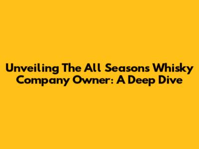 Unveiling The All Seasons Whisky Company Owner: A Deep Dive