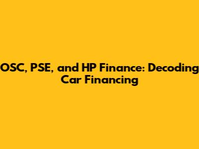 Hey guys! Let's dive into the world of car financing, specifically focusing on some terms that might seem a bit like alphabet soup at first: OSC, PSE, and HP Finance. Don't worry, we'll break it down so it's super easy to understand. Figuring out how to finance a car can feel overwhelming, but once you understand these key concepts, you'll be cruising towards your new ride with confidence. We'll explore what these terms mean, how they relate to car financing, and what you need to know to make informed decisions. Ready to become a car financing pro? Let's go!
