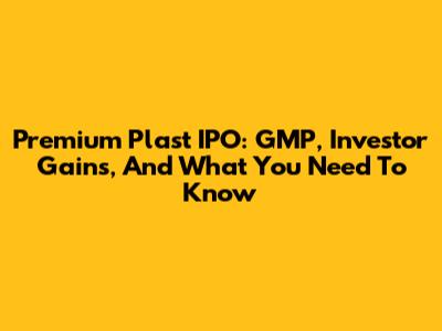 Premium Plast IPO: GMP, Investor Gains, And What You Need To Know