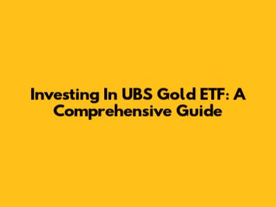 Investing In UBS Gold ETF: A Comprehensive Guide