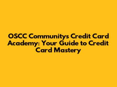 Hey everyone! Welcome to the OSCC Community's Credit Card Academy, your go-to resource for everything credit cards. We're diving deep into the world of credit, from understanding the basics to mastering advanced strategies. Whether you're a newbie just starting out or a seasoned credit card user looking to level up your game, this academy is designed for you. Get ready to unlock the secrets of credit cards and learn how to make them work for you. We'll be covering a wide range of topics, including credit scores, different types of cards, responsible spending habits, and how to maximize rewards and benefits. So, buckle up, grab your favorite beverage, and let's get started on this exciting journey to financial empowerment. This guide is crafted to be your ultimate companion, providing you with all the necessary information and tools to navigate the often-complex world of credit cards successfully. We'll break down the jargon, provide practical tips, and ensure you're well-equipped to make informed decisions about your financial future.