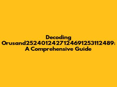 Decoding Orusand2524012427124691253112489: A Comprehensive Guide