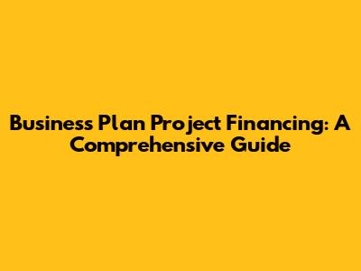 Business Plan Project Financing: A Comprehensive Guide