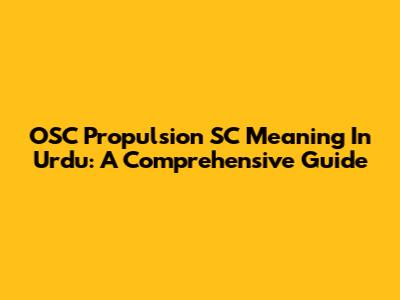OSC Propulsion SC Meaning In Urdu: A Comprehensive Guide