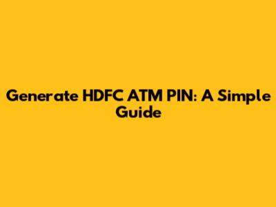 Generate HDFC ATM PIN: A Simple Guide