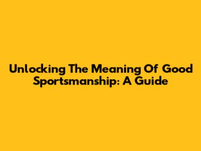 Unlocking The Meaning Of Good Sportsmanship: A Guide