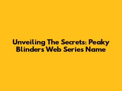 Unveiling The Secrets: Peaky Blinders' Web Series Name