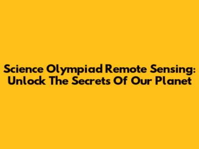 Science Olympiad Remote Sensing: Unlock The Secrets Of Our Planet