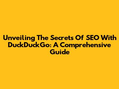 Unveiling The Secrets Of SEO With DuckDuckGo: A Comprehensive Guide