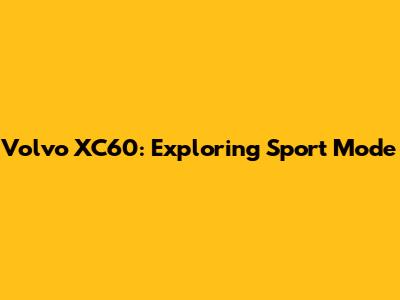 Volvo XC60: Exploring Sport Mode