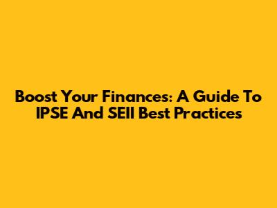 Boost Your Finances: A Guide To IPSE And SEII Best Practices