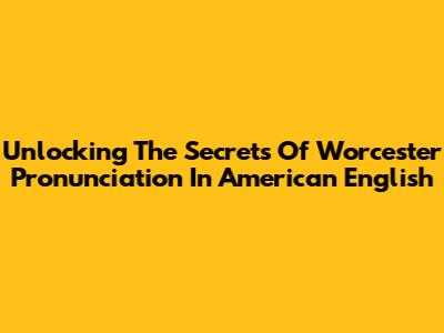 Unlocking The Secrets Of 'Worcester' Pronunciation In American English