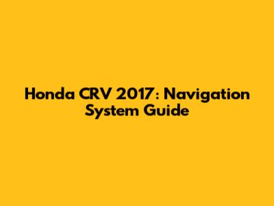 Honda CRV 2017: Navigation System Guide