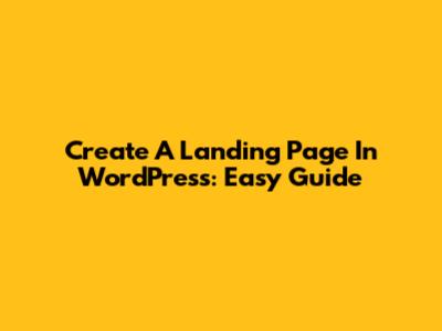 Create A Landing Page In WordPress: Easy Guide