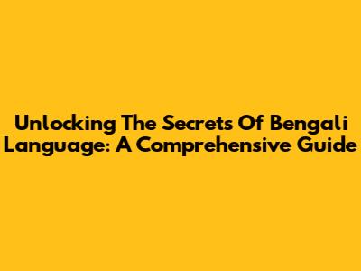 Unlocking The Secrets Of Bengali Language: A Comprehensive Guide