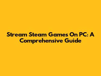 Stream Steam Games On PC: A Comprehensive Guide
