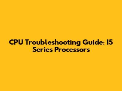 CPU Troubleshooting Guide: I5 Series Processors