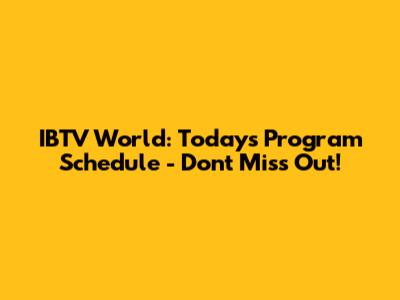 IBTV World: Today's Program Schedule - Don't Miss Out!