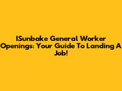 ISunbake General Worker Openings: Your Guide To Landing A Job!