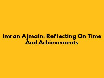 Imran Ajmain: Reflecting On Time And Achievements