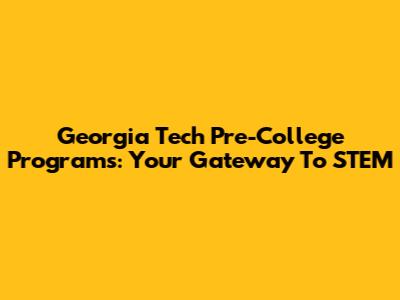 Georgia Tech Pre-College Programs: Your Gateway To STEM
