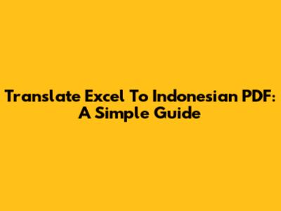 Translate Excel To Indonesian PDF: A Simple Guide