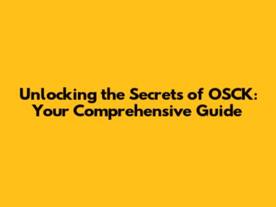 What is OSCK, Really? Understanding the Basics