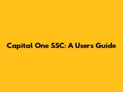 Capital One SSC: A User's Guide