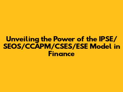 Hey finance enthusiasts! Ever heard of the IPSE/SEOS/CCAPM/CSES/ESE model in finance? If not, you're in for a treat! This model, a complex yet incredibly insightful framework, helps us understand and navigate the often-turbulent waters of financial markets. It's like having a superpower that allows you to see the underlying forces driving investments, risk, and, ultimately, financial success. This article will break down this model and provide you with a comprehensive understanding of each component. By the time you're done reading, you'll be well on your way to leveraging this powerful tool in your financial journey. So, buckle up, grab your favorite beverage, and let's dive deep into the fascinating world of the IPSE/SEOS/CCAPM/CSES/ESE model.