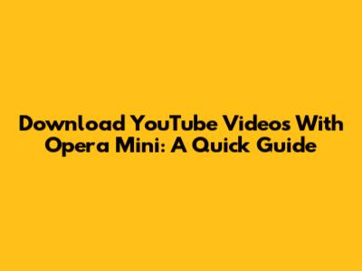 Download YouTube Videos With Opera Mini: A Quick Guide