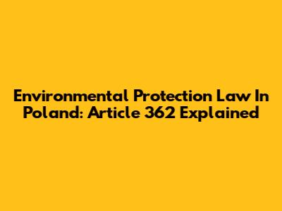 Environmental Protection Law In Poland: Article 362 Explained