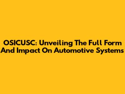 OSICUSC: Unveiling The Full Form And Impact On Automotive Systems