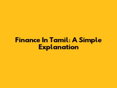 Finance In Tamil: A Simple Explanation