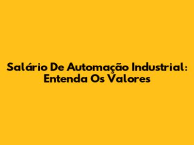Salário De Automação Industrial: Entenda Os Valores